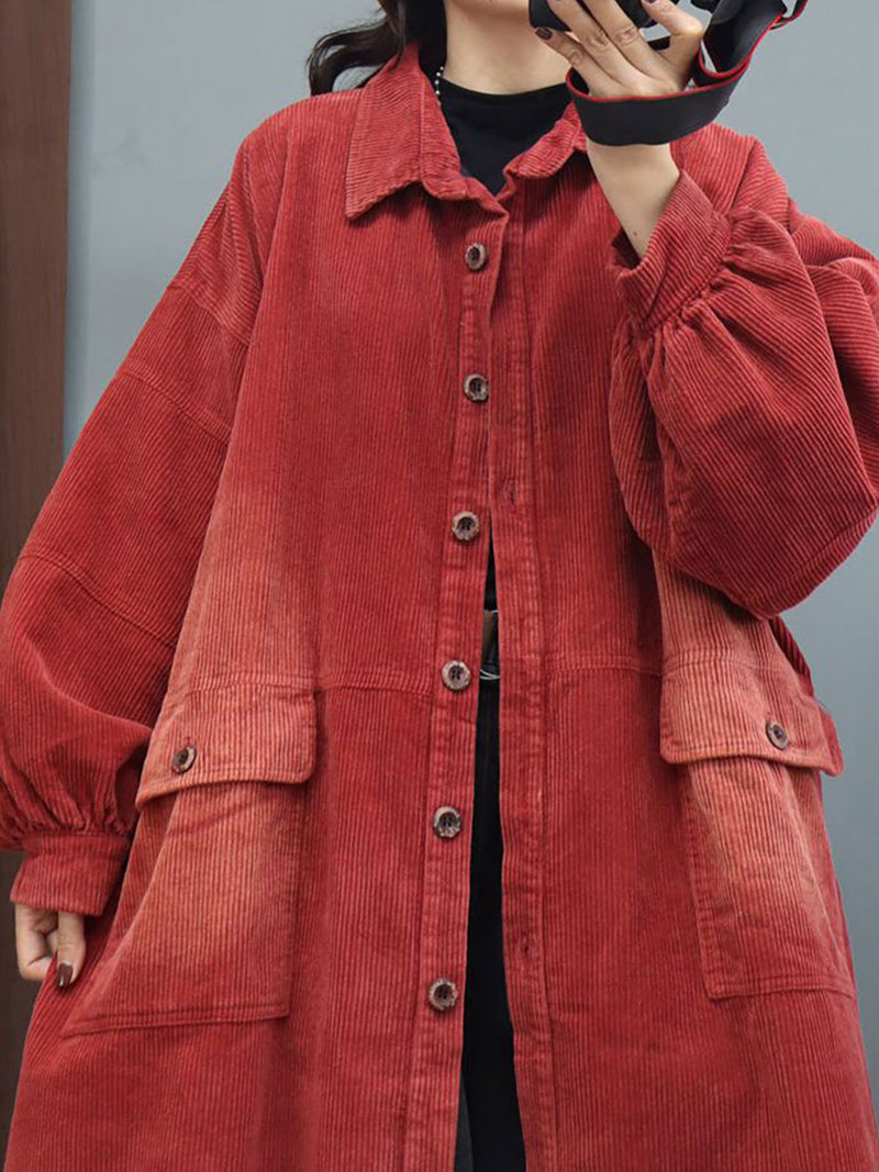 This women's winter loose flared sleeve midi coat is perfect for women looking for commuter style. The cotton material features a stylish POLO collar and full-length sleeves for durability and comfort. Two large pockets make this product stand out.