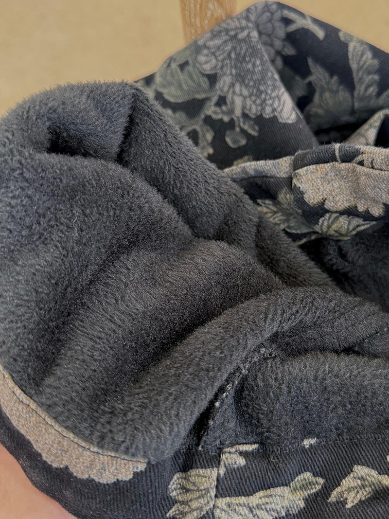 Women Winter Retro Flower Fleece-lined Harem Pants