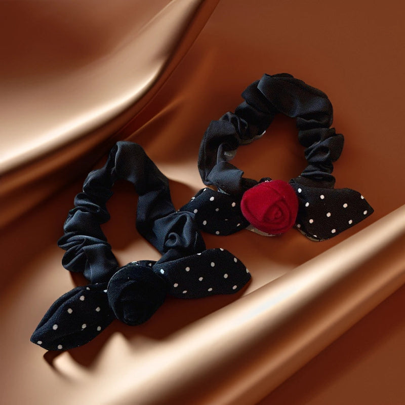 Women's Classic Style Polka Dots Bow Knot Cloth Flannel Printing Hair Tie