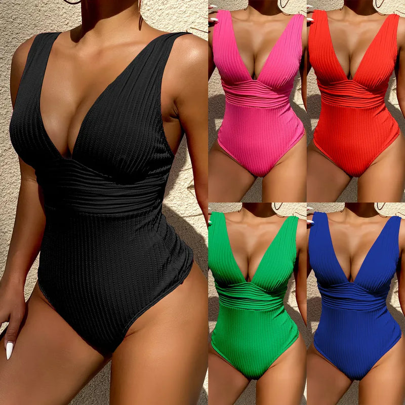 Women's Sexy Beach Stripe 1 Piece Tankinis Swimwear