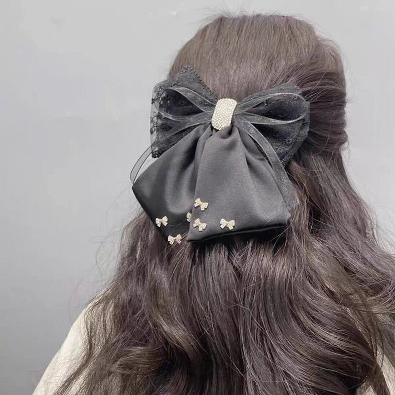 Women's Simple Style Classic Style Bow Knot satin Gauze Inlay Rhinestones hair buckle