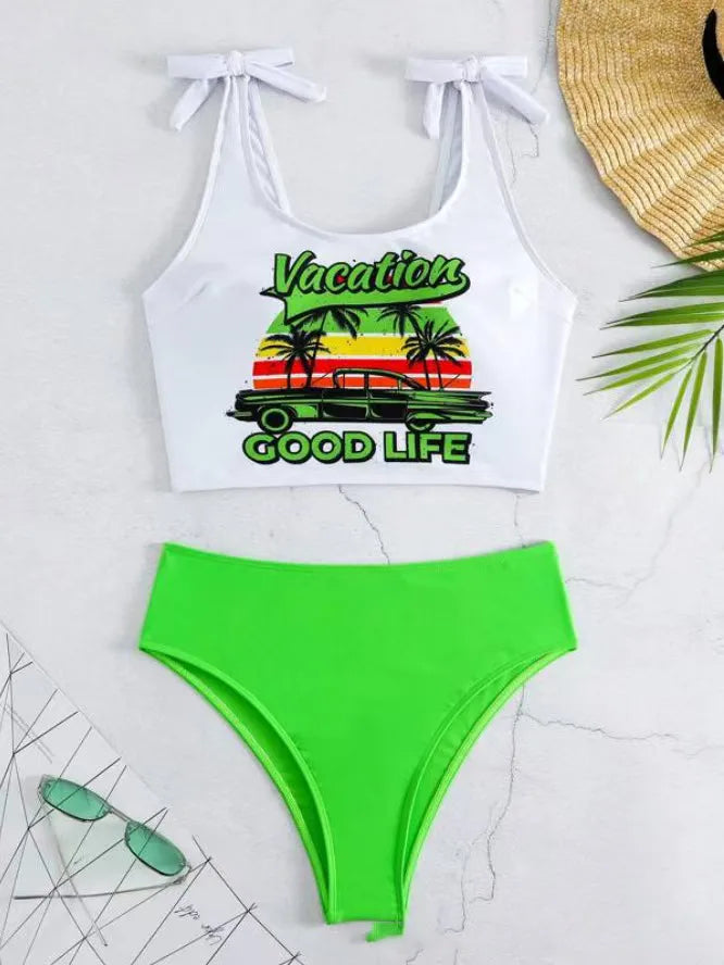 Women's Vocabulary Words/Name 2 Pieces Set Bikinis Swimwear