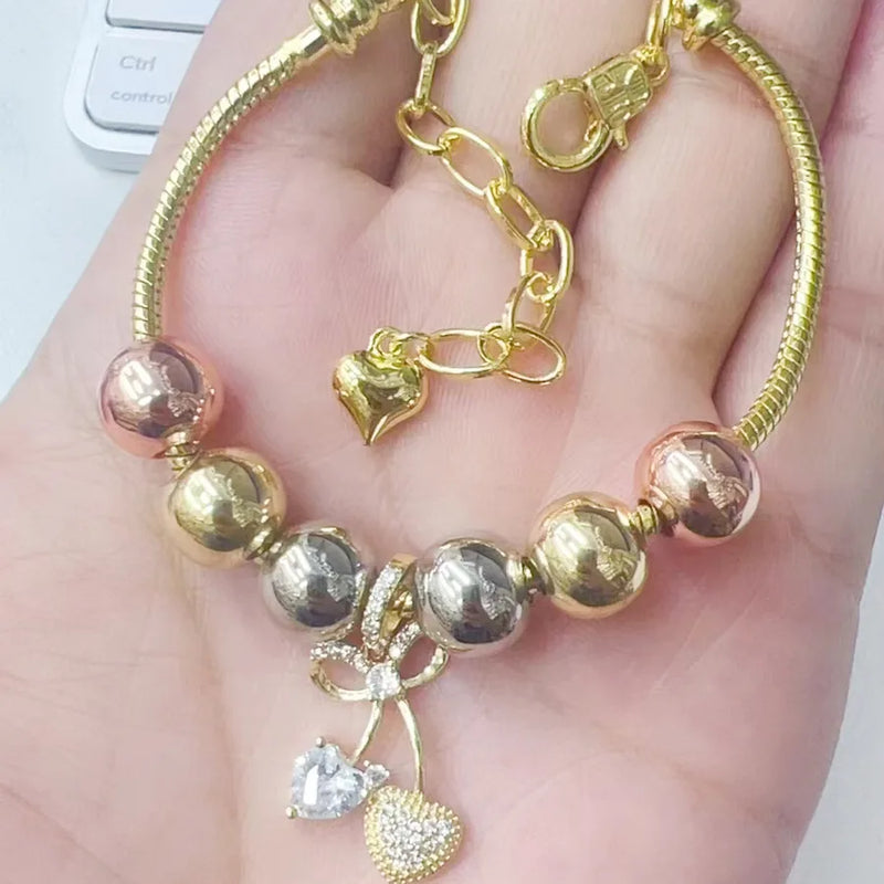 White Zircon Cherry & Three Colors Ball Bracelet (Gold)
