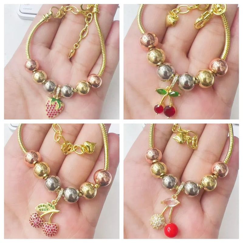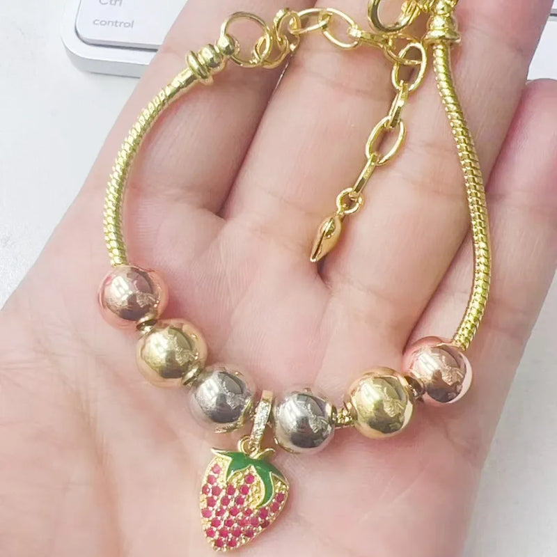 Strawberry & Three Colors Ball Bracelet (Gold)