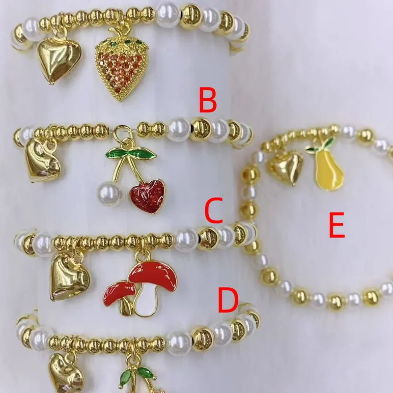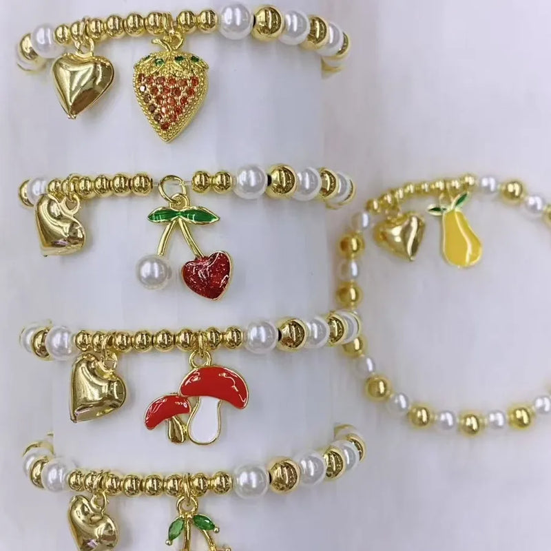 Wholesale Jewelry Casual Sweet Simple Style Cherry Heart Shape Strawberry Acrylic Pearl Copper Zircon 18K Gold Plated Polishing Enamel Inlay Beaded Chain Bracelets