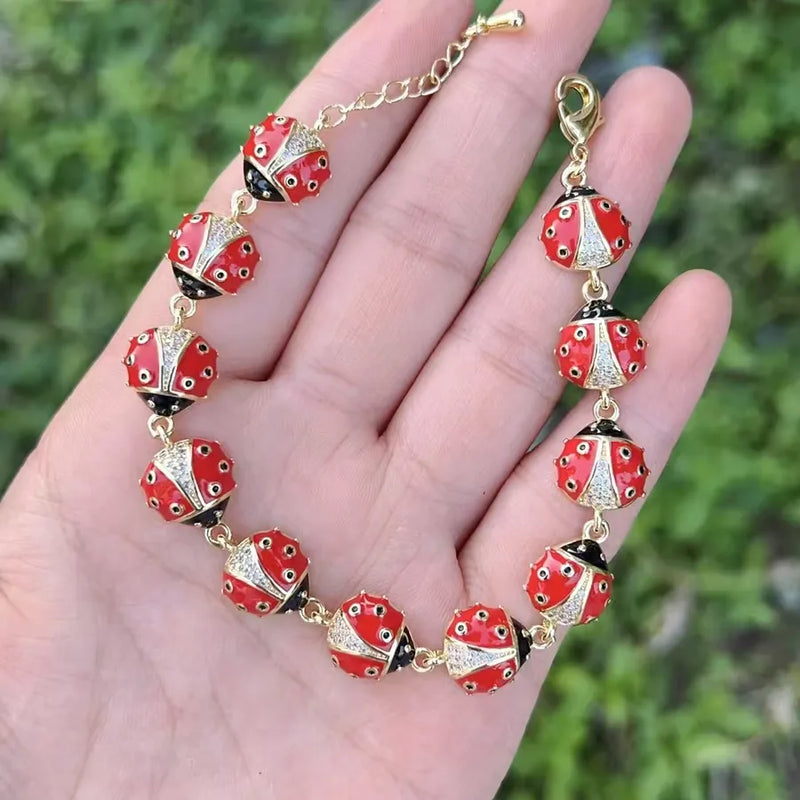 Wholesale Jewelry IG Style Pastoral Beetles Copper Zircon 18K Gold Plated Polishing Enamel Inlay Handmade Chain Bracelets