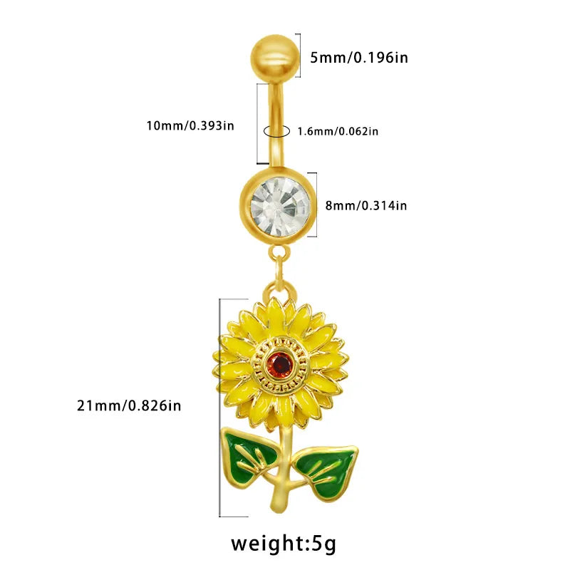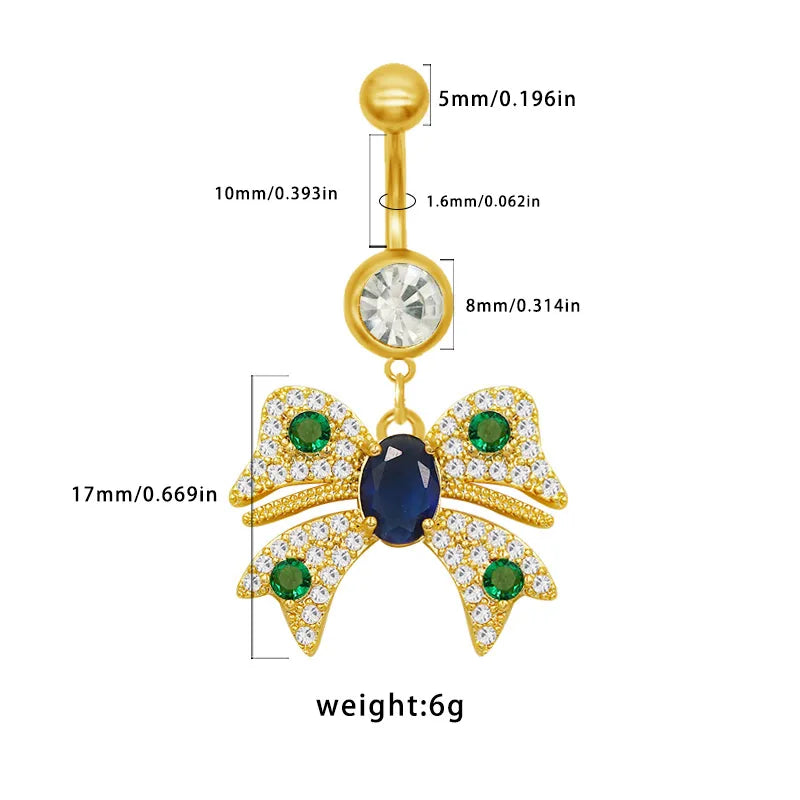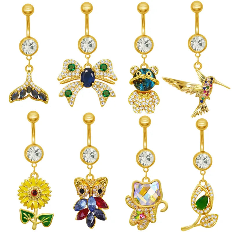 1 Piece Belly Rings Elegant Hawaiian Tropical Bear Cat Bow Knot 316 Stainless Steel Alloy Inlay Resin Rhinestones Glass Gold Plated