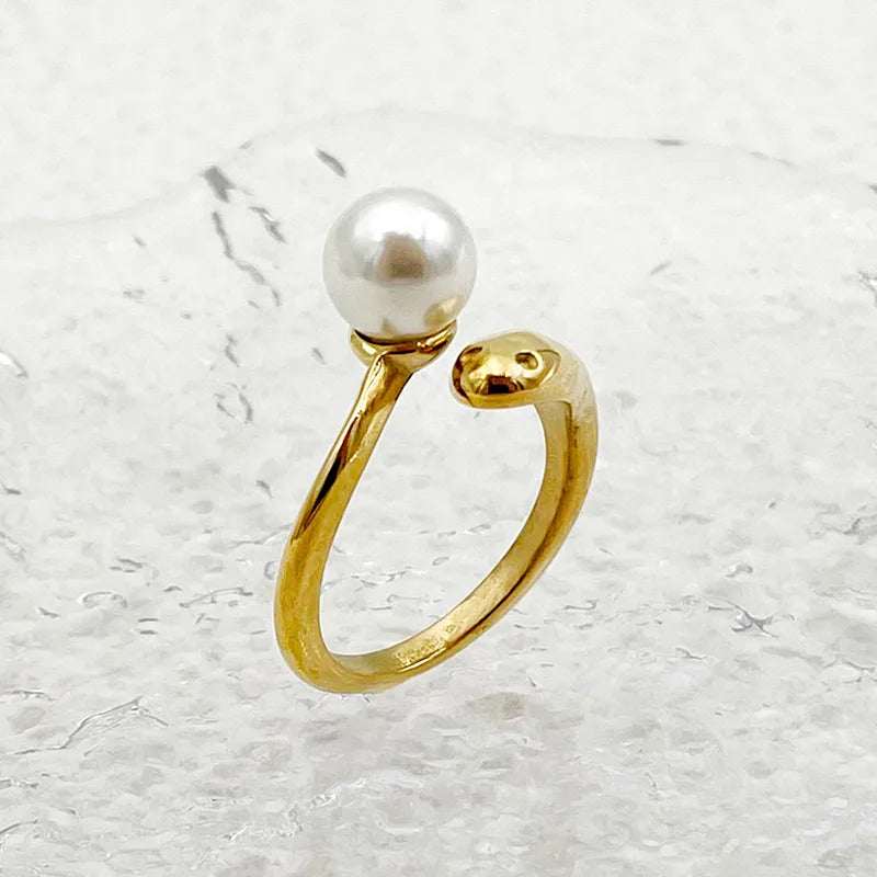304 Stainless Steel Gold Plated Simple Style Roman Style Commute Plating Inlay Round Pearl Rings