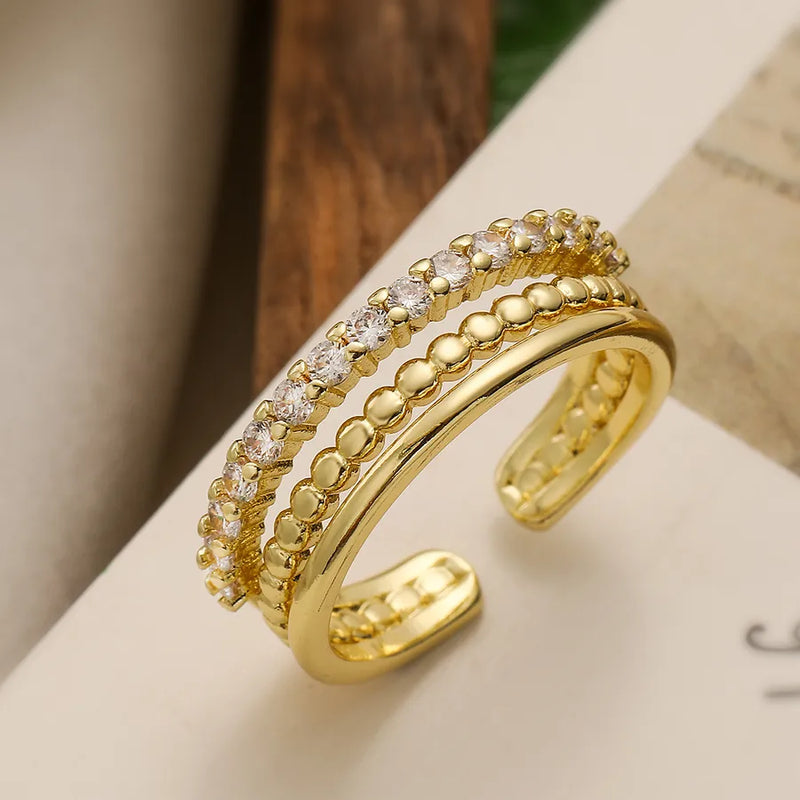 Copper 18K Gold Plated Elegant Retro Inlay Geometric Zircon Open Rings