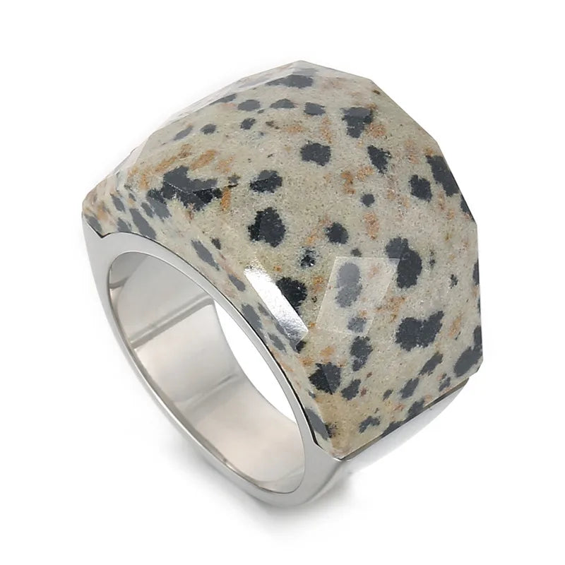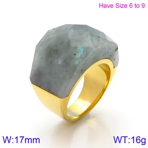 fashion round stainless steel plating inlay natural stone rings 1 piece