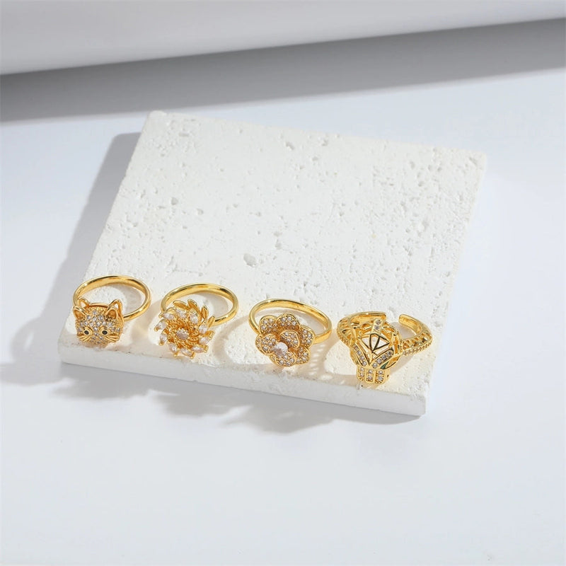 Jewelry Casual Cute Cat Flower Copper Zircon 14K Gold Plated Rings