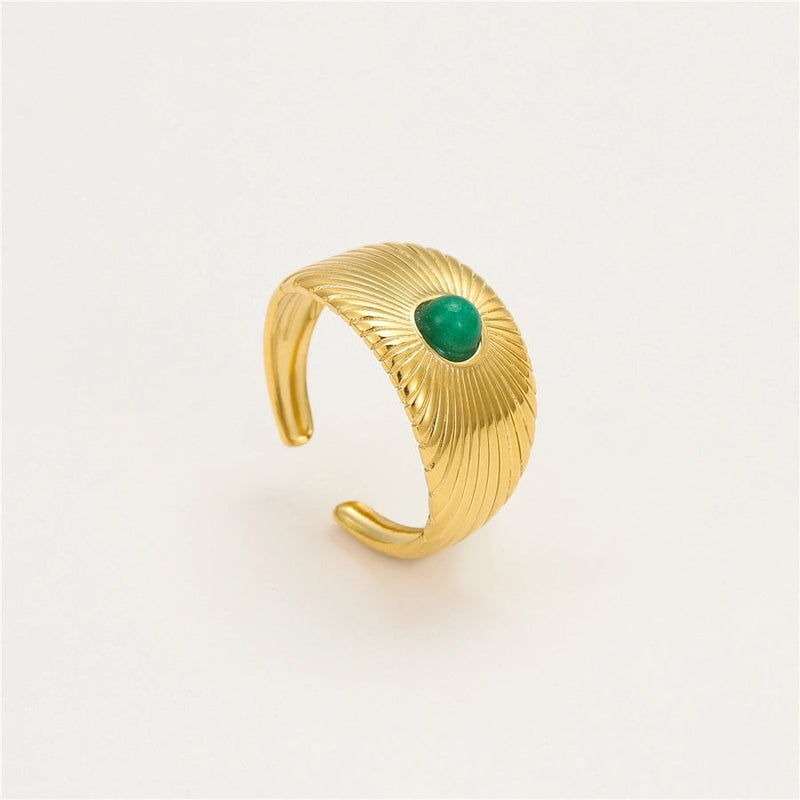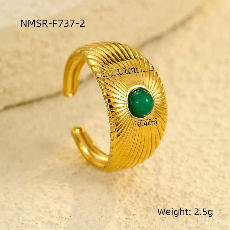 Jewelry IG Style Simple Style Geometric 304 Stainless Steel Natural Stone 18K Gold Plated Inlay Open Rings