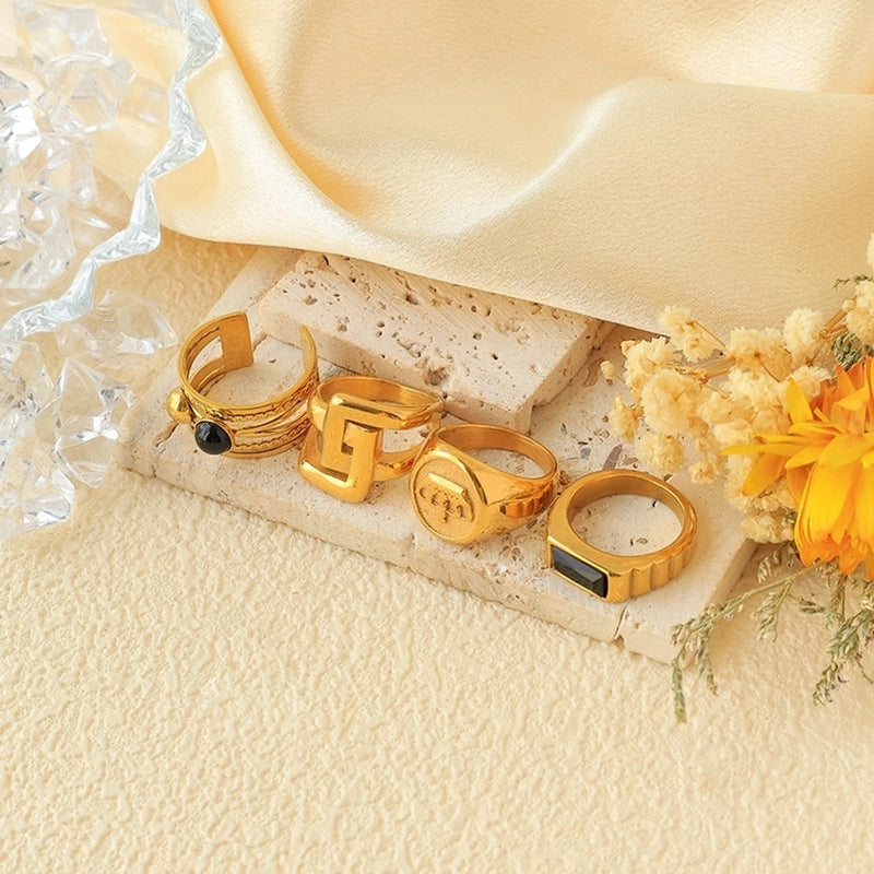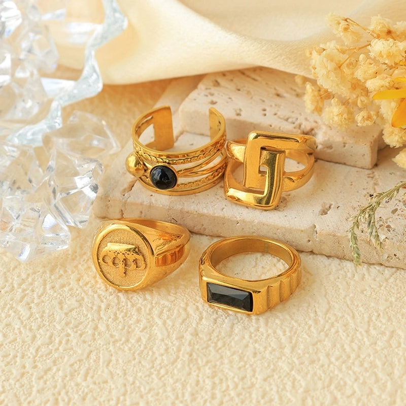 Jewelry Punk Roman Style Commute Geometric Crown 304 Stainless Steel Zircon 14K Gold Plated Plating Inlay Rings