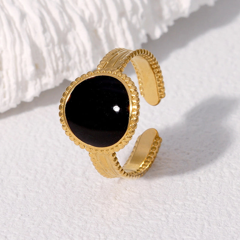 Jewelry Retro French Style Simple Style Geometric 304 Stainless Steel 18K Gold Plated Enamel Stainless Steel Rings