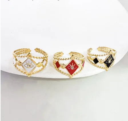 retro devil's eye rhombus stainless steel 14k gold plated zircon open ring in bulk