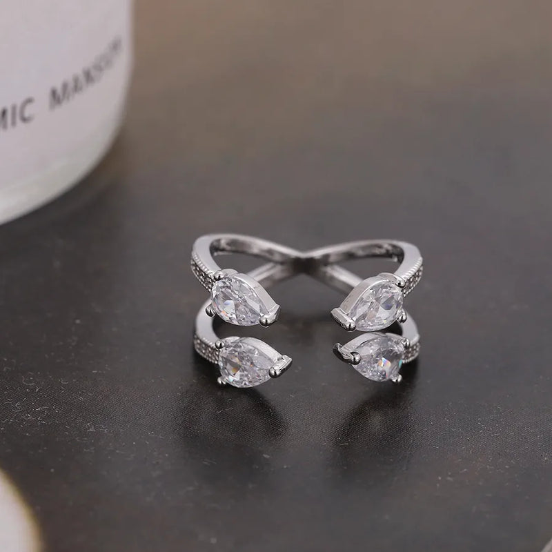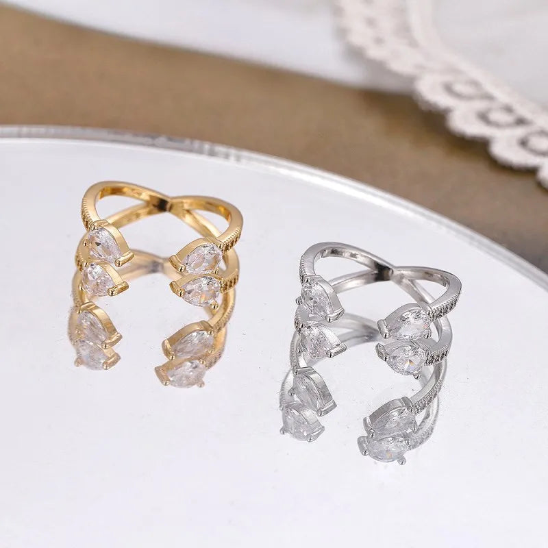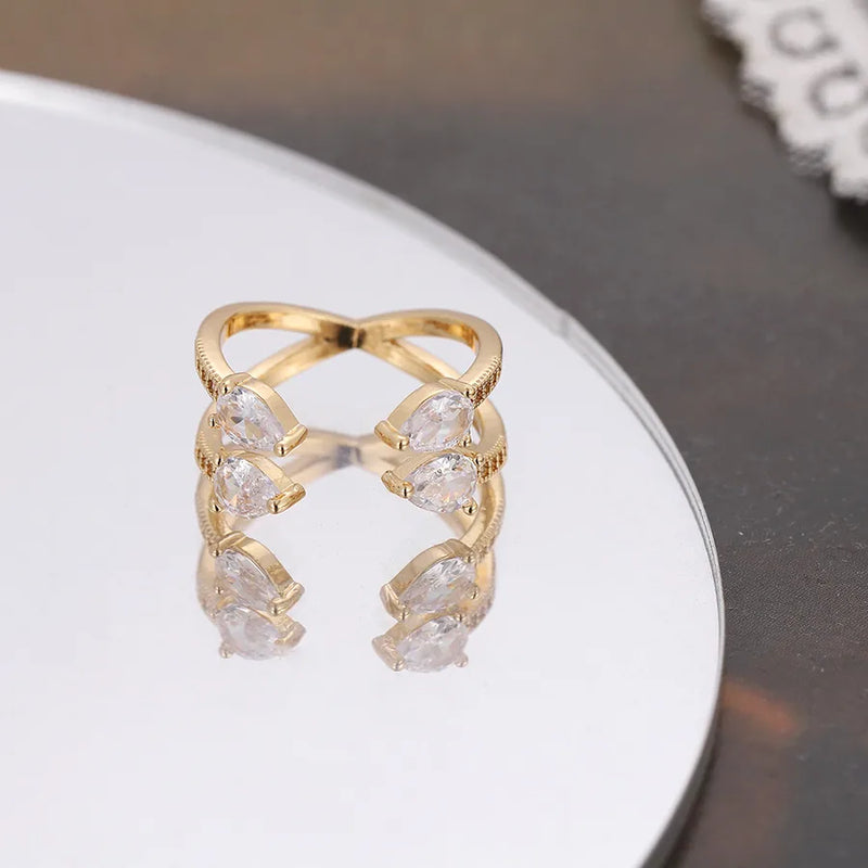 simple style geometric copper 18k gold plated silver plated zircon adjustable ring in bulk