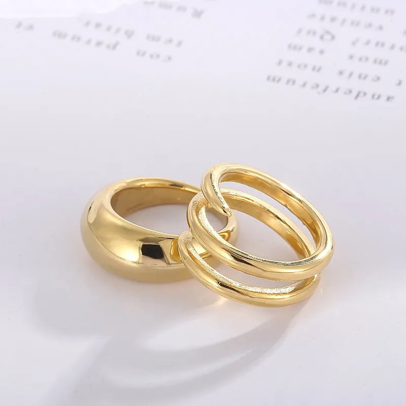 Titanium Steel 18K Gold Plated Basic Plating Metal Geometric Rings