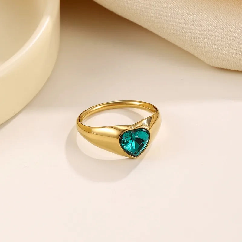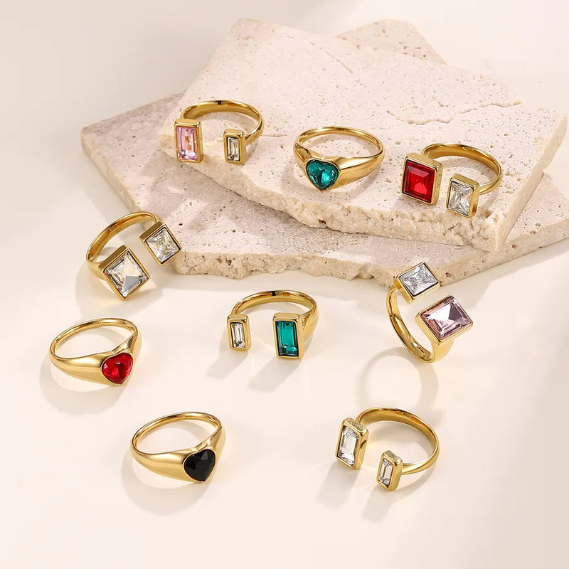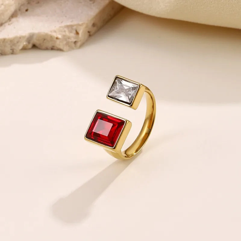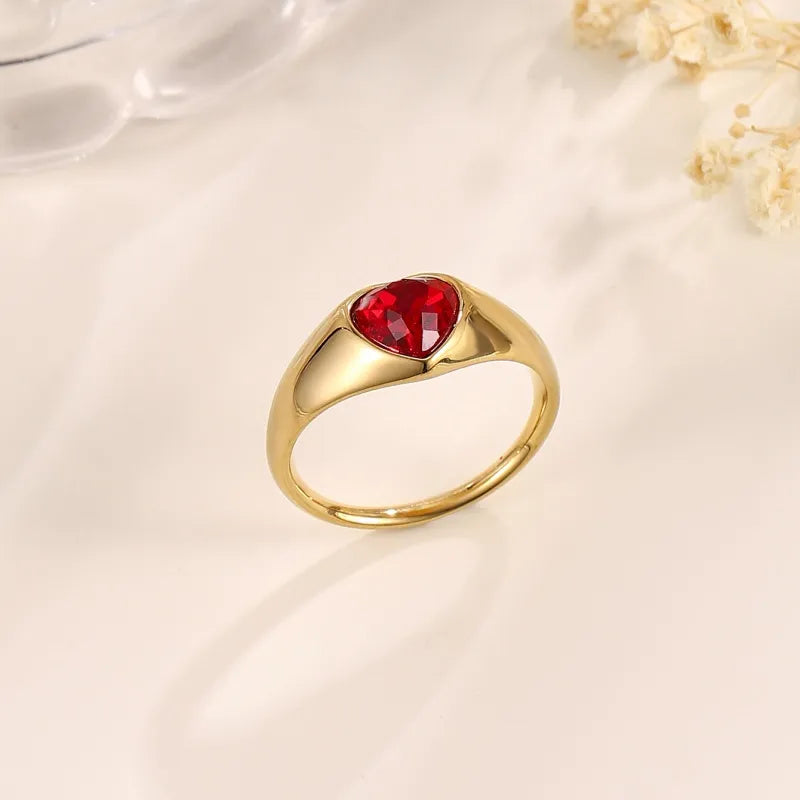 Wholesale Jewelry Beach Modern Style Commute Geometry Red Heart 304 Stainless Steel Adjustable Ring Open Rings Rings