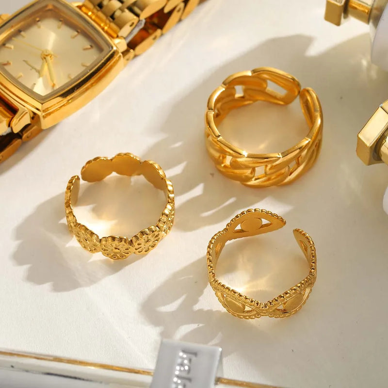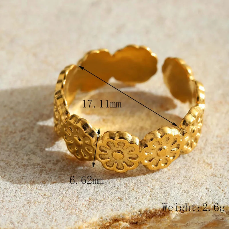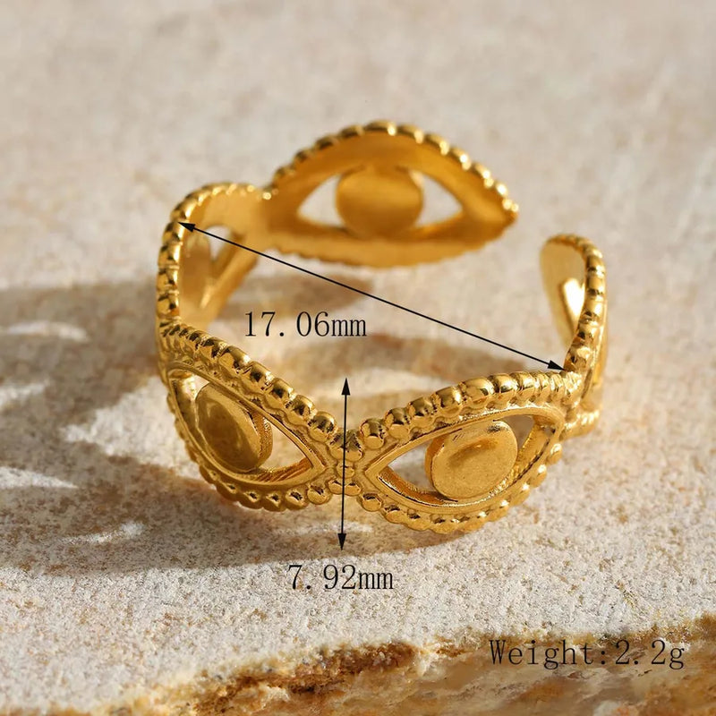 Wholesale Jewelry Casual Artistic Geometric Eye Flower 304 Stainless Steel 18K Gold Plated Open Rings