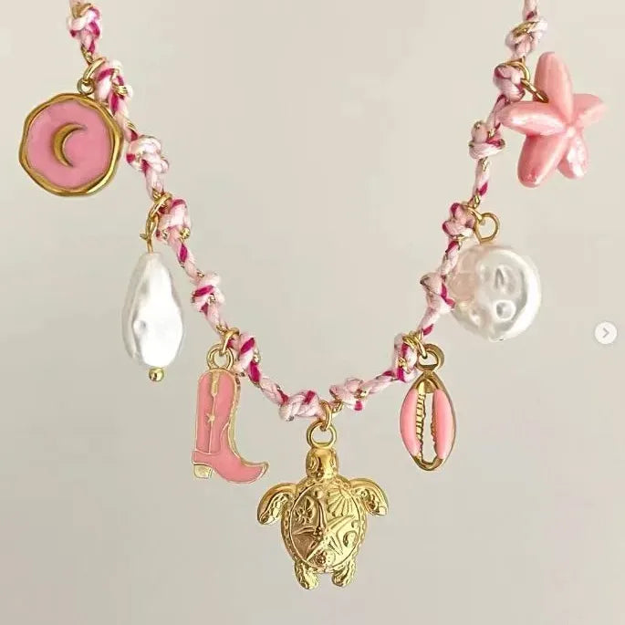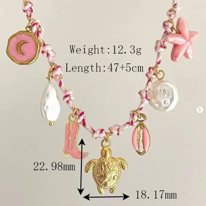 Wholesale Jewelry Casual Beach Commute Tortoise Geometric Starfish 304 Stainless Steel Imitation Pearl 18K Gold Plated Epoxy Plating Inlay Cord String Multi Charms Necklace