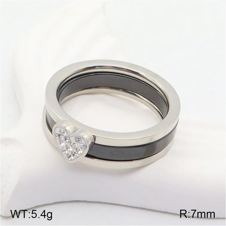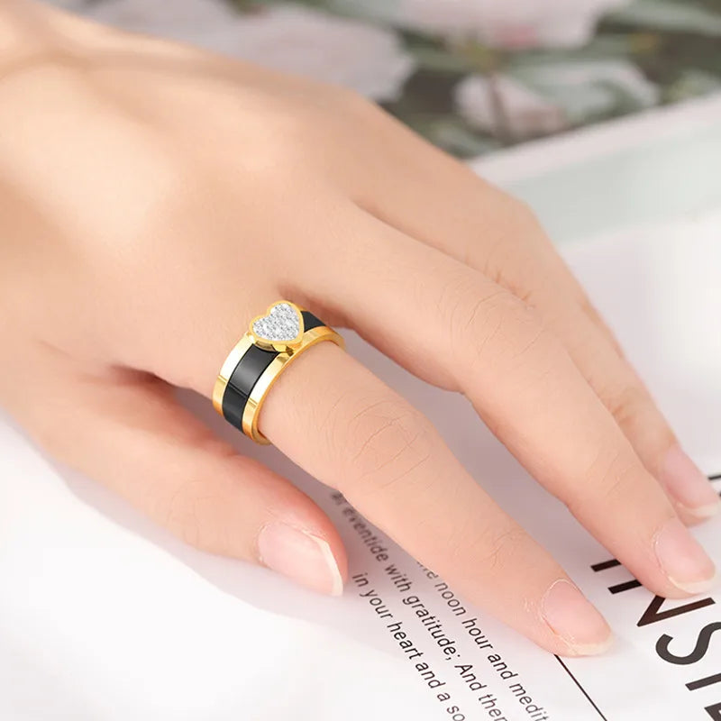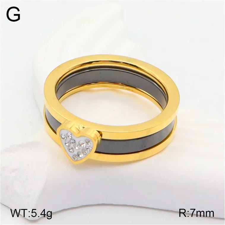Wholesale Jewelry Casual Classic Style Heart Shape 304 Stainless Steel Rhinestones 18K Gold Plated Rings
