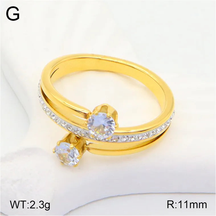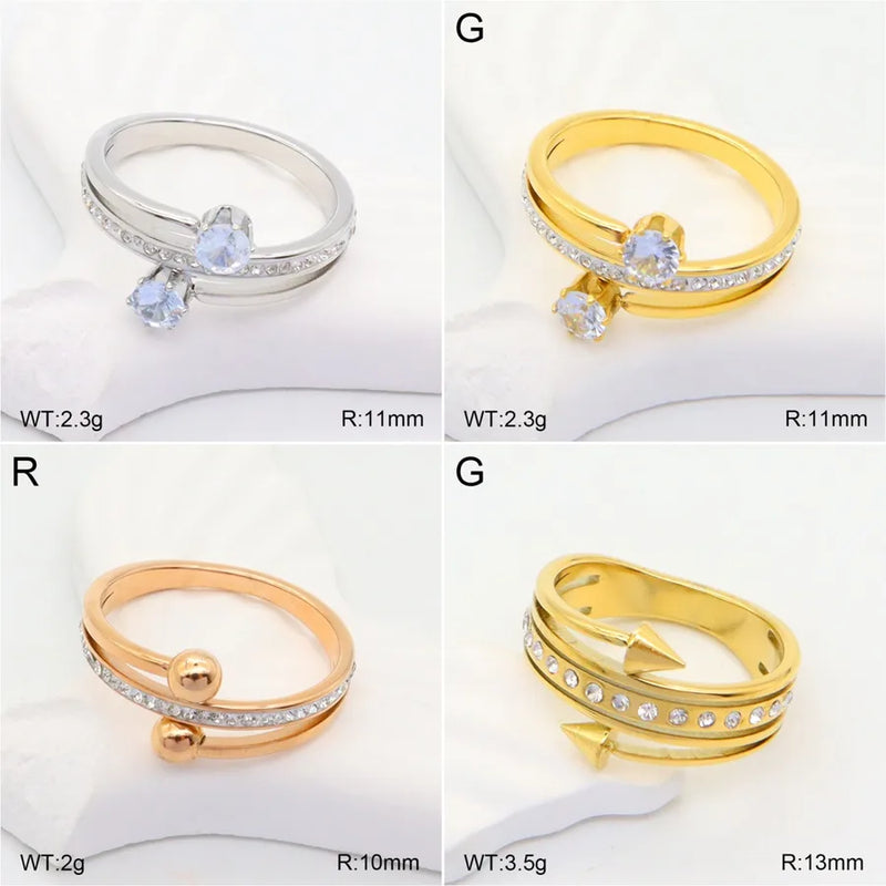 Wholesale Jewelry Casual Classic Style Portrait Ball 304 Stainless Steel Rhinestones 18K Gold Plated Rings