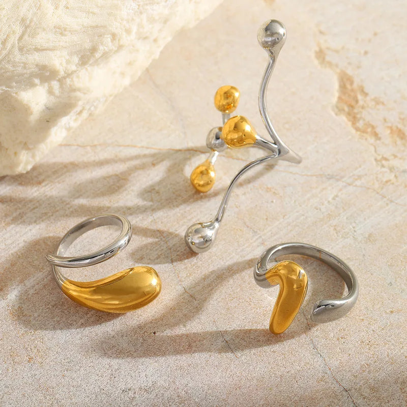 Wholesale Jewelry Casual Elegant Classic Style Asymmetrical Irregular Geometric 304 Stainless Steel 18K Gold Plated Mixed Metal Plating Rings
