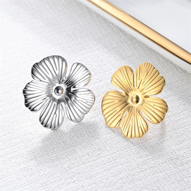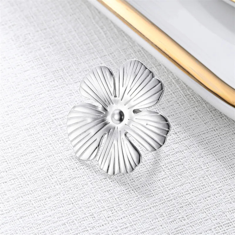 Wholesale Jewelry Casual Original Design Novelty Leaves Flower 201 Stainless Steel 18K Gold Plated Flowers Open Rings Rings