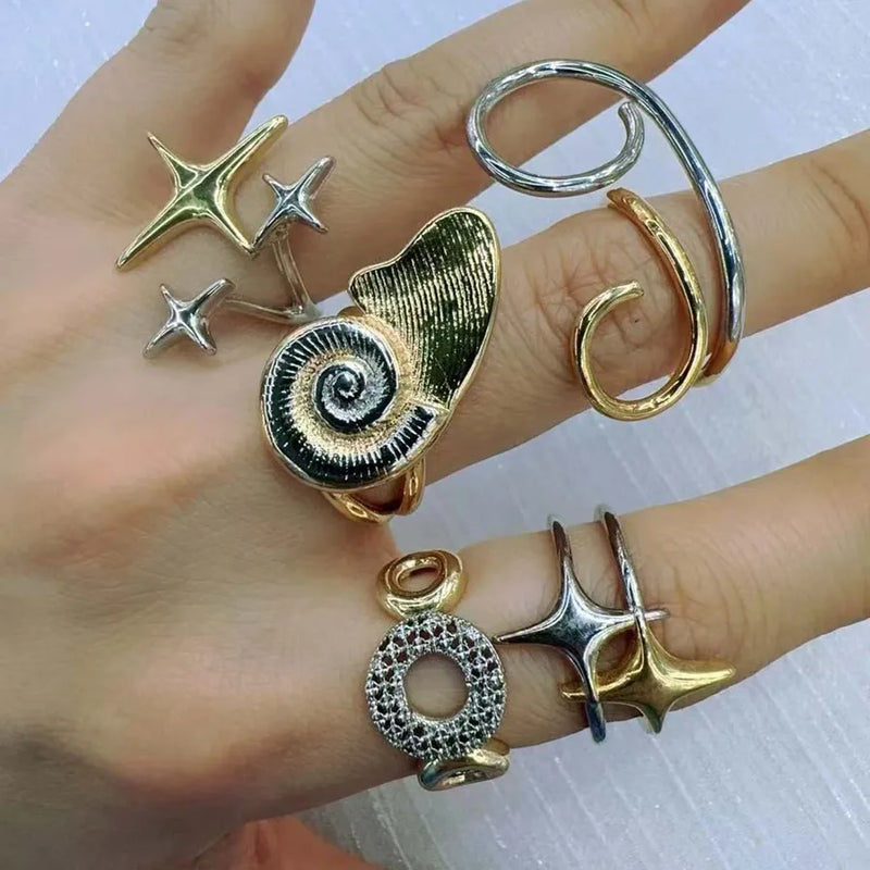 Wholesale Jewelry Casual Retro Beach Geometric Star Conch Copper Zircon 18K Gold Plated Inlay Rings