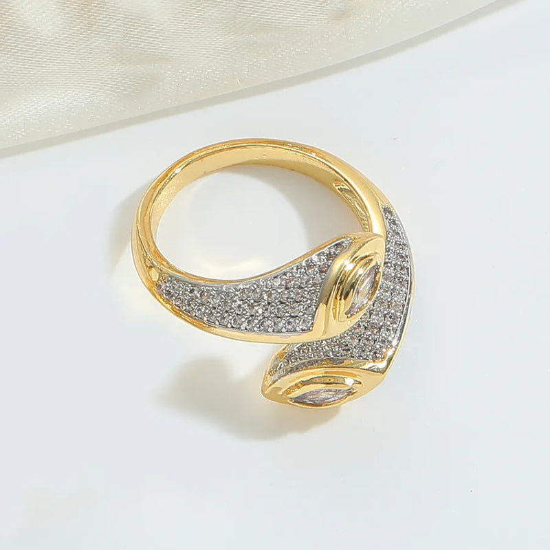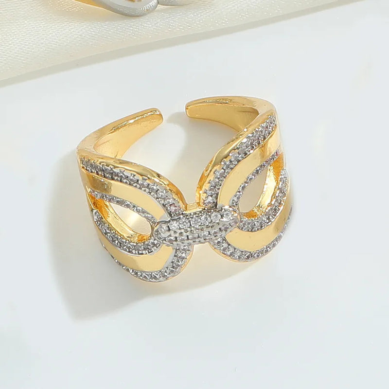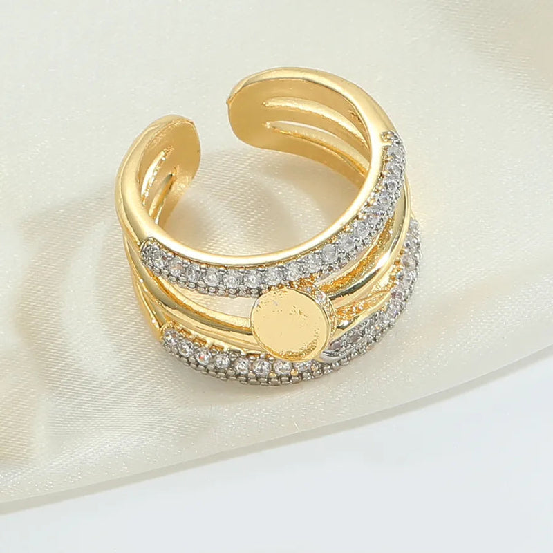 Wholesale Jewelry Casual Retro Solid Color Copper Zircon 14K Gold Plated Hollow Out Open Rings
