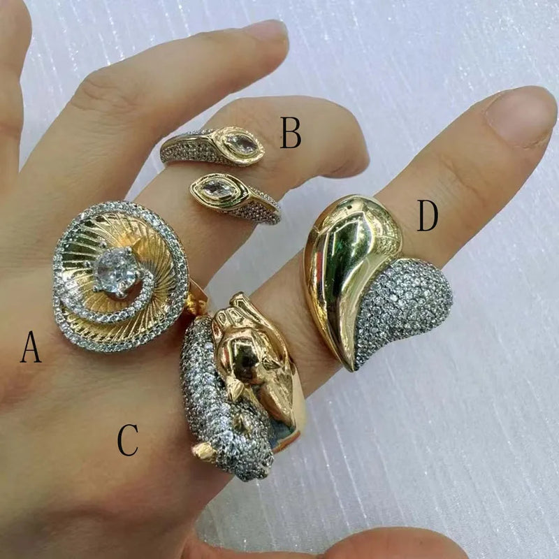 Wholesale Jewelry Casual Romantic Classic Style Geometric Heart Shape Flower Copper Zircon 18K Gold Plated Inlay Rings