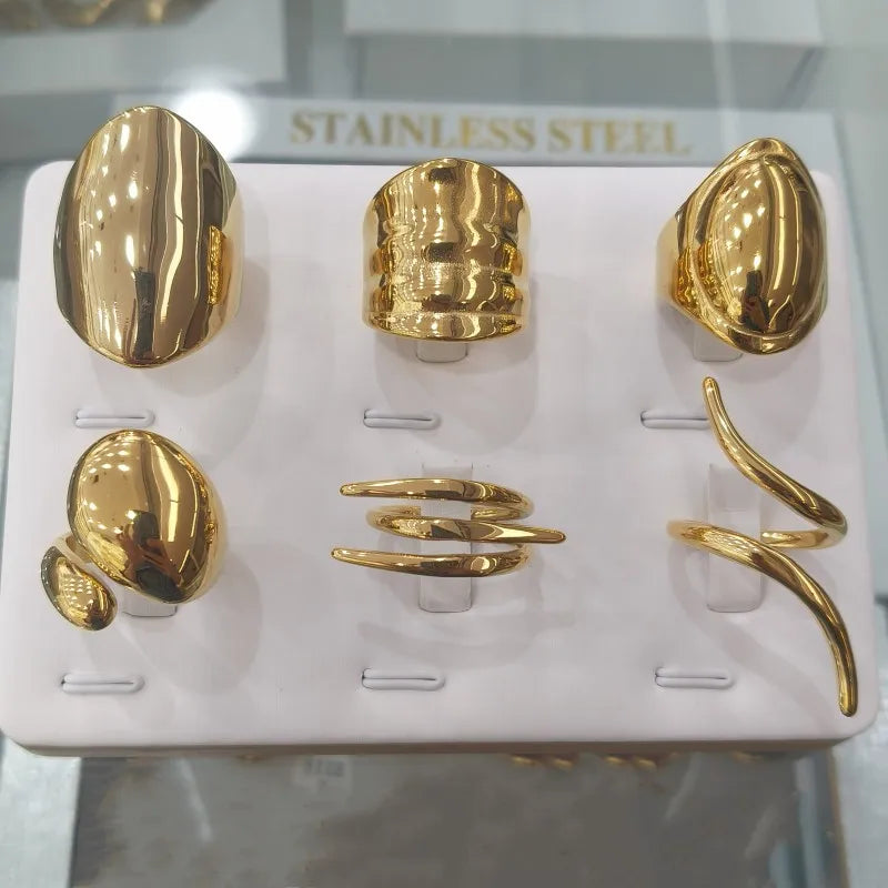 Wholesale Jewelry Casual Simple Style Geometric Solid Color 304 Stainless Steel 18K Gold Plated Rings