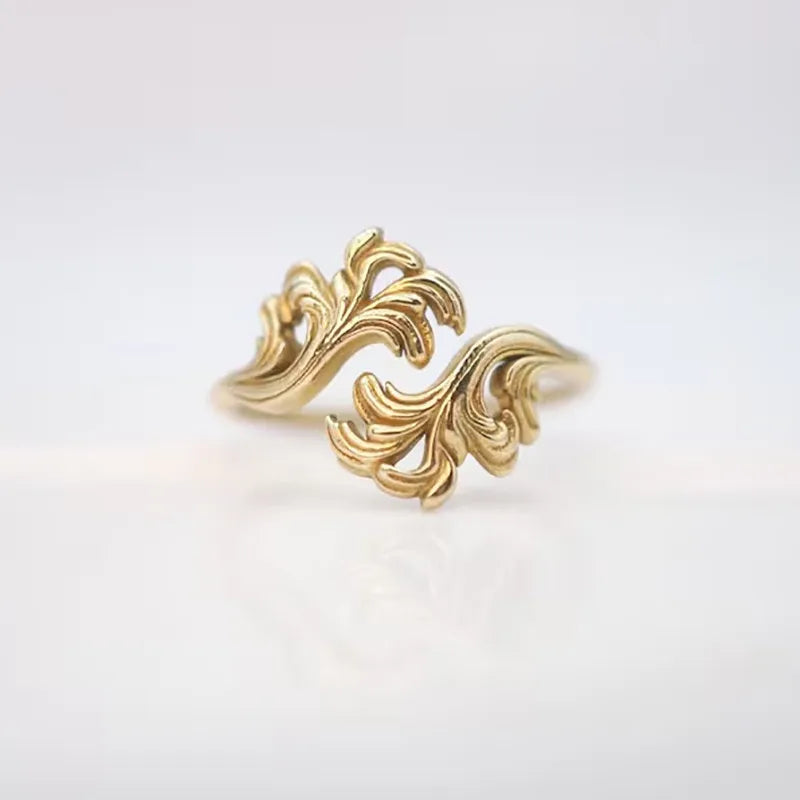 Wholesale Jewelry Chinoiserie Sweet Artistic Wreath Copper 18K Gold Plated Imitation Gold Open Rings