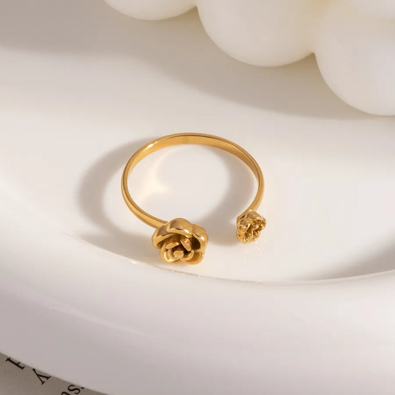 Wholesale Jewelry Classical Cute Romantic Rose 304 Stainless Steel 18K Gold Plated Open Rings