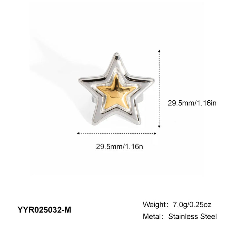Wholesale Jewelry Elegant Glam Lady Star 304 Stainless Steel 18K Gold Plated Open Rings