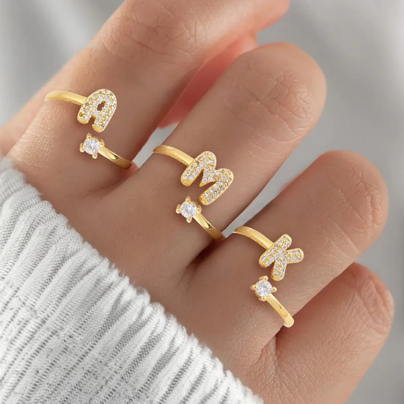 Wholesale Jewelry Elegant Vintage Style Simple Style Letter Copper Zircon Inlay Open Rings