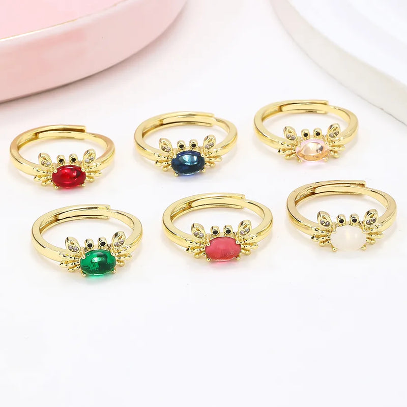 Wholesale Jewelry Glam Shiny Crab Copper Zircon 18K Gold Plated Plating Open Rings