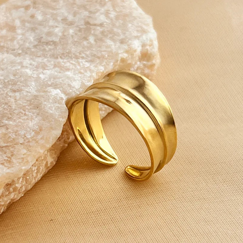 Wholesale Jewelry Retro Luxurious Simple Style Solid Color 304 Stainless Steel 18K Gold Plated Plating Rings