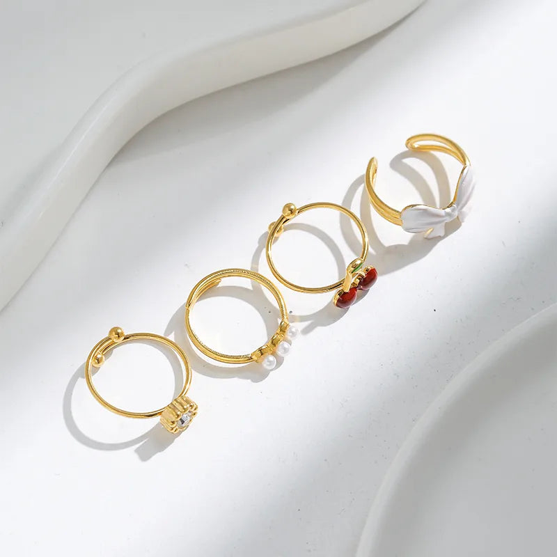 Wholesale Jewelry Simple Style Classic Style Round Cherry Bow Knot 304 Stainless Steel 14K Gold Plated Enamel Plating Adjustable Ring Open Rings