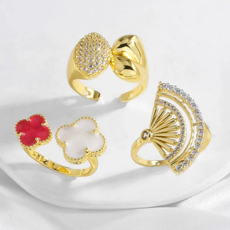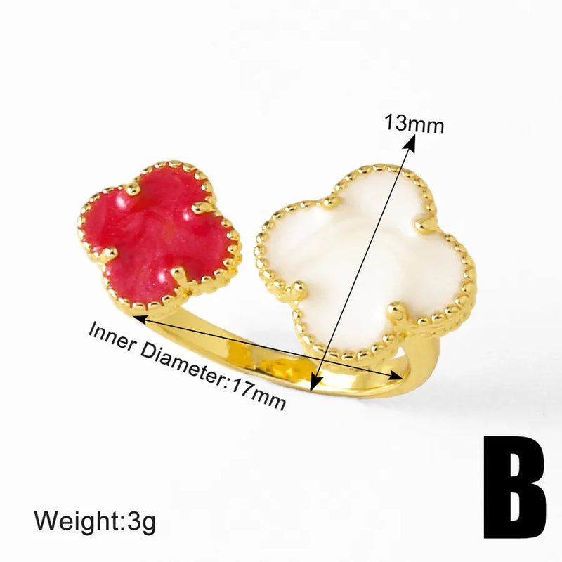 Wholesale Jewelry Simple Style Four Leaf Clover Copper Zircon 18K Gold Plated Plating Inlay Rings