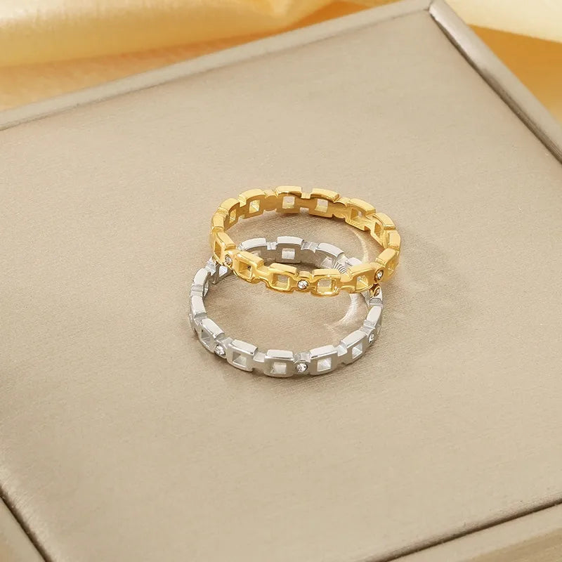 Wholesale Jewelry Simple Style Geometric 304 Stainless Steel 18K Gold Plated Hollow Out Rings
