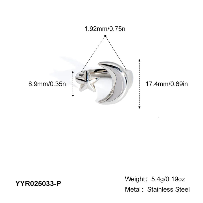 Wholesale Jewelry Vacation Classic Style Star Moon 304 Stainless Steel 18K Gold Plated Plating Rings