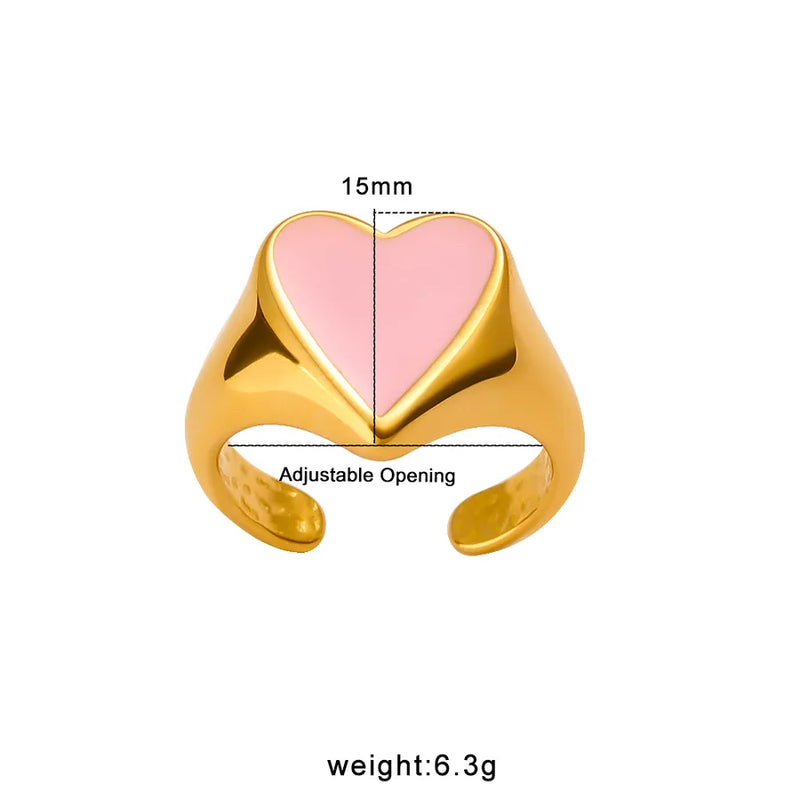 Wholesale Jewelry Vacation Heart Shape 304 Stainless Steel 18K Gold Plated Open Rings