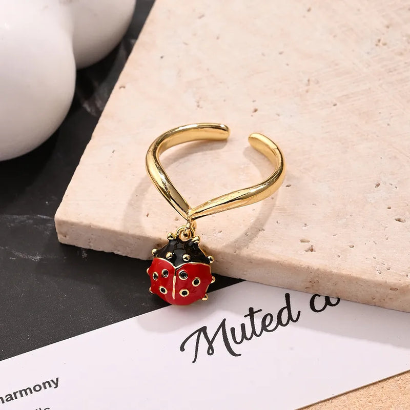 Oil Dripping Ladybug Open Ring (Gold)【Inner Diameter: 17mm】