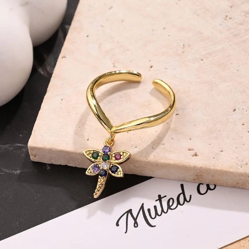 Colorful Zircon Dragonfly Open Ring (Gold)【Inner Diameter: 17mm】