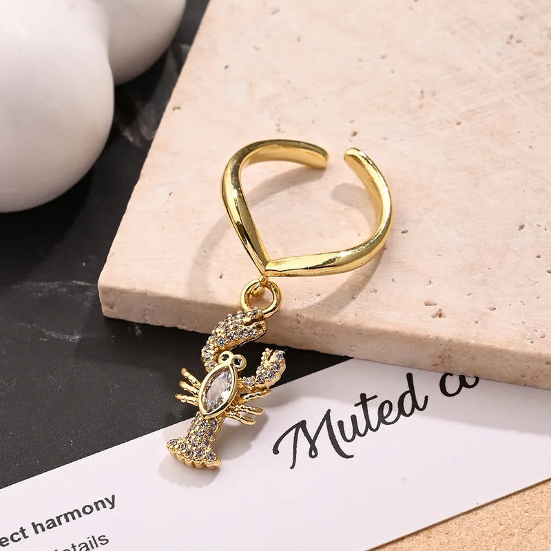 White Zircon Lobster Open Ring (Gold)【Inner Diameter: 17mm】