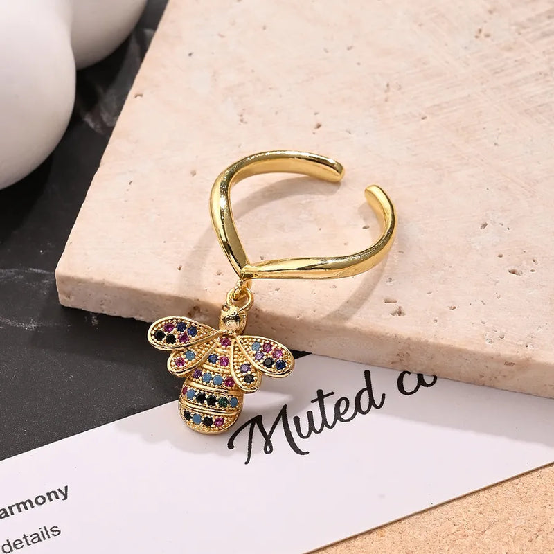 Colorful Zircon Pointed-Tailed Bee Open Ring (Gold)【Inner Diameter: 17mm】