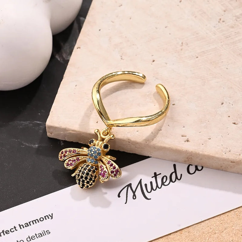 Colorful Zircon Black Tail Bee Open Ring (Gold)【Inner Diameter: 17mm】
