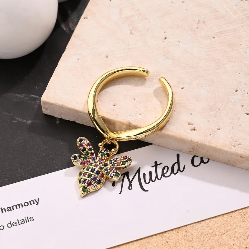 Colorful Zircon round Tail Bee Open Ring (Gold)【Inner Diameter: 17mm】