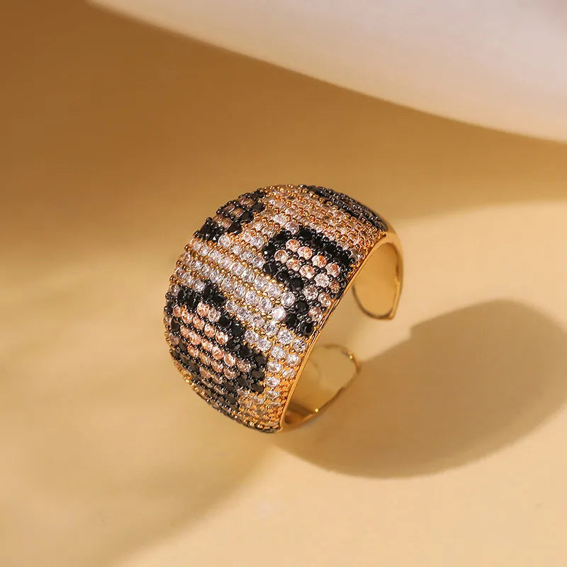 Wholesale Jewelry Vintage Style Cool Style Leopard Copper Zircon 18K Gold Plated Plating Inlay Open Rings